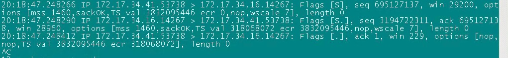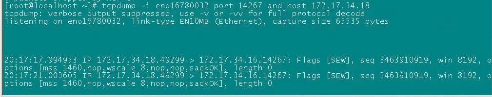 # tcpdump -i eno16780032 port 14267 and host 172.17.34.18