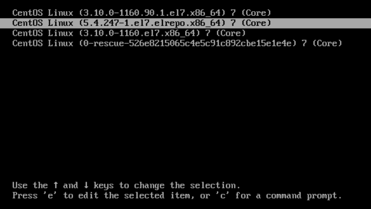 如下,要使用5.x的内核版本,则应该grub2-set-default 1